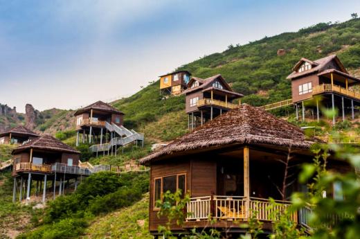 独栋木屋群是山谷最深处的景观,凿岩而建,攀岩山体。远远望去,布局精湛的木屋群高低错落,疏密有致,为壮丽山川注入了盈盈神气。